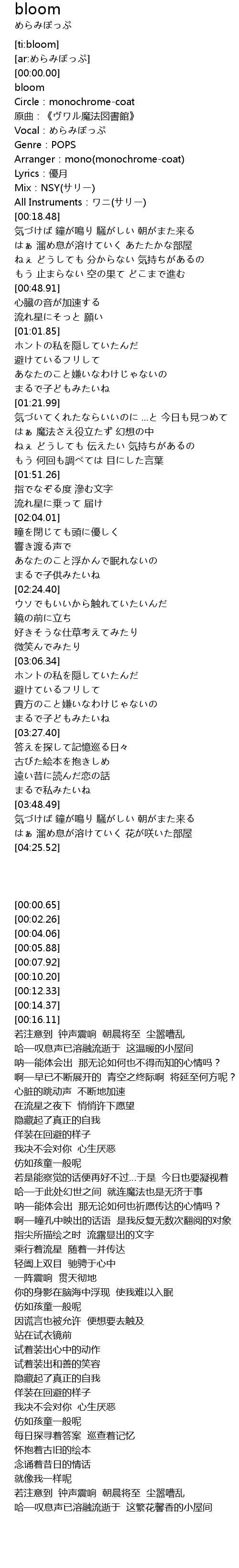 | [00:10.20] | Arranger:mono(monochrome-coat) |