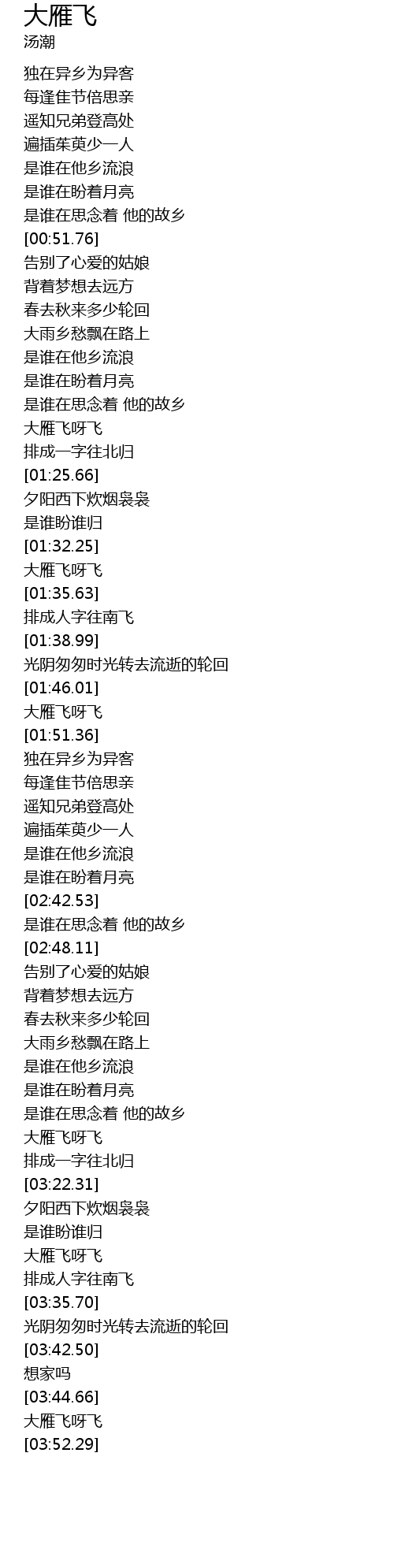 | [00:46.30] | shì shuí zài sī niàn zhe tā de gù xiāng |