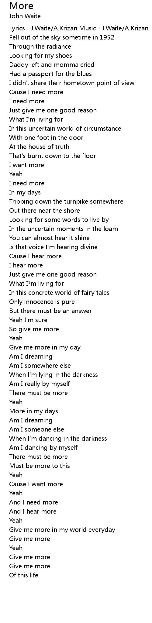 | Cause I need more | |