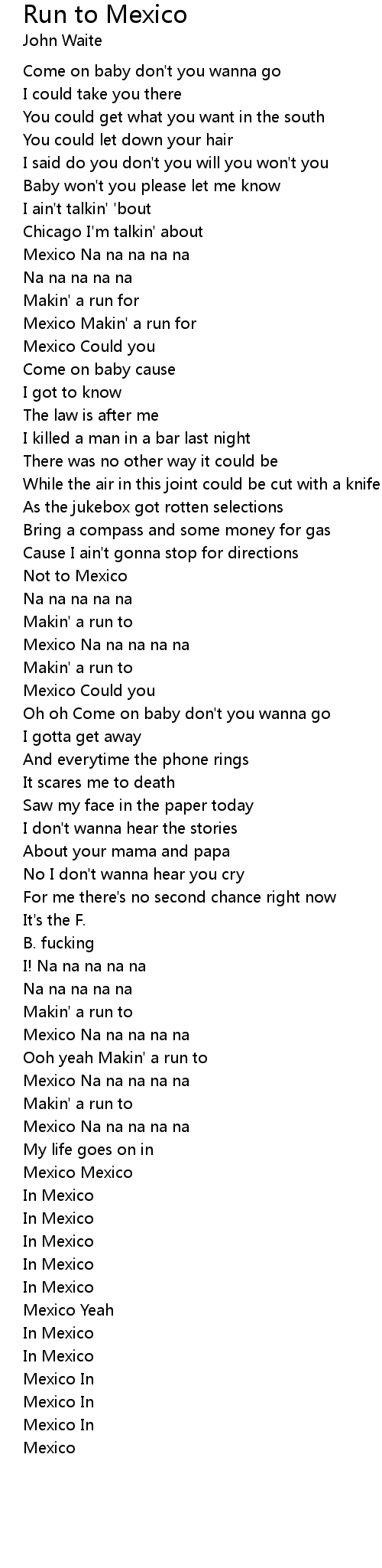 Run to Mexico 歌词