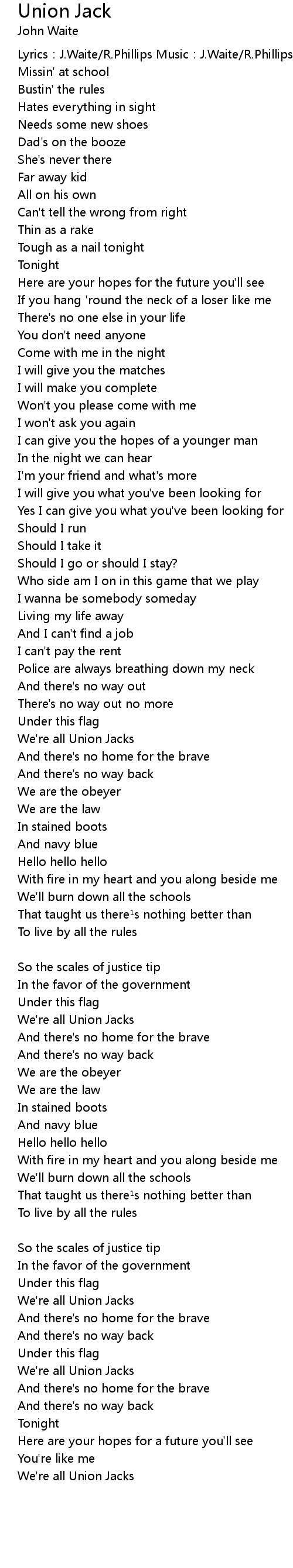 | Lyrics: J. Waite R. Phillips Music: J. Waite R. Phillips | |