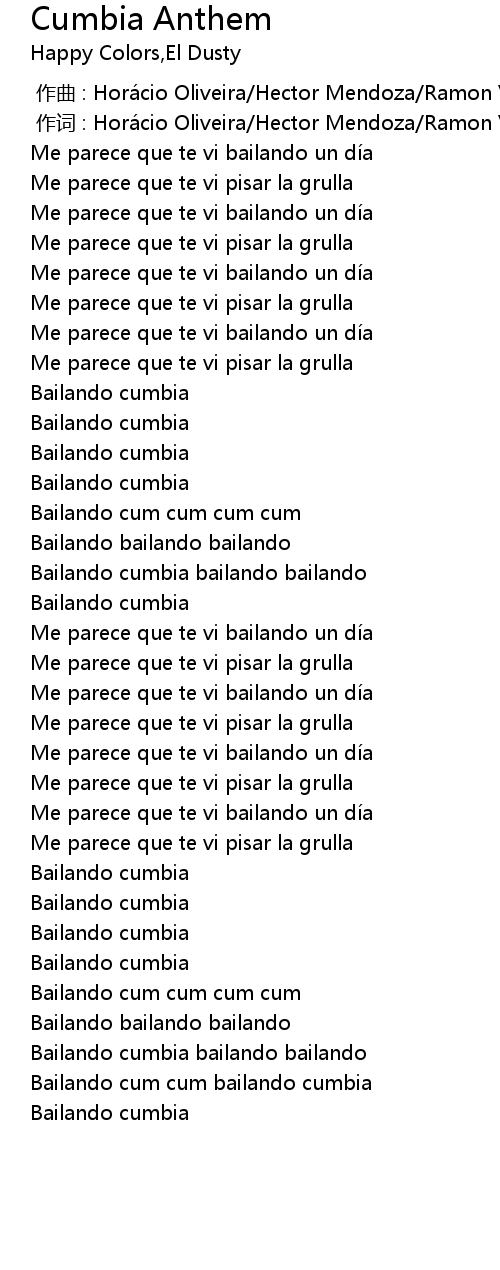 | [01:21.11] | Bailando cumbia bailando bailando |