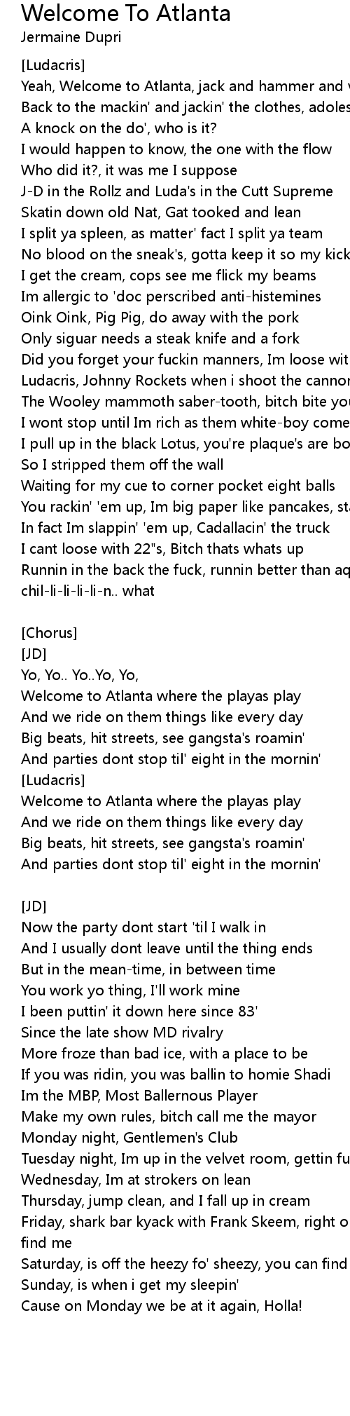 Yeah, Welcome to Atlanta, jack and hammer and vogues' |