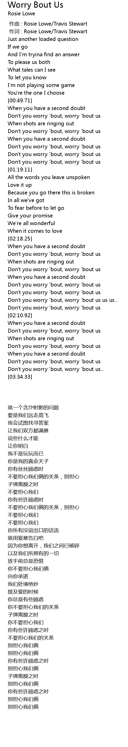 | [02:38.81] | Don' t you worry ' bout, worry ' bout us |