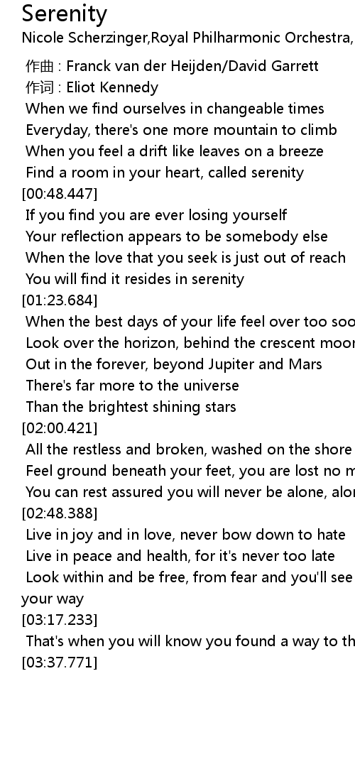 | [01:15.962] | You will find it resides in serenity |