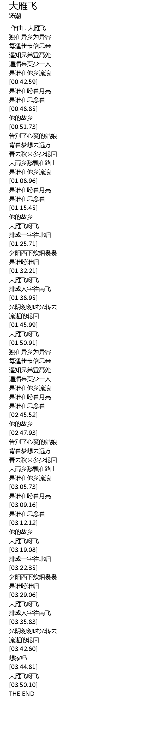 | [03:29.66] | 大雁飞呀飞 |