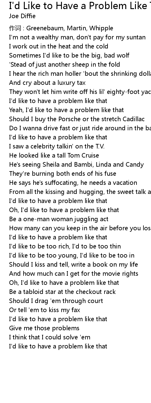 | 歌曲 | I'd Like to Have a Problem Like That |