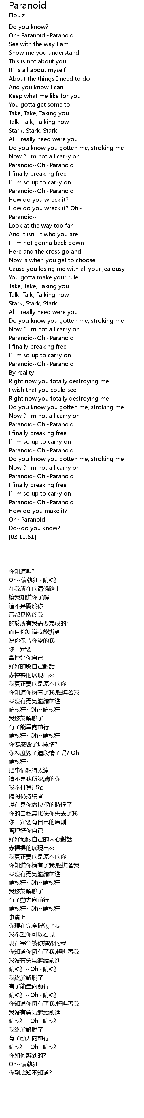 | [00:01.18] | Oh~Paranoid~Paranoid |