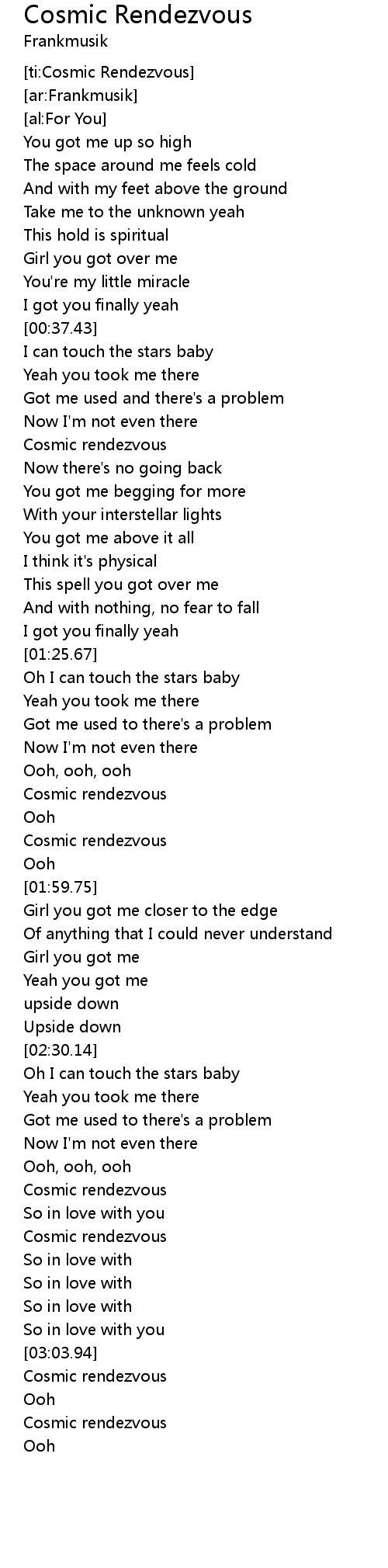 [ti:Cosmic Rendezvous] |