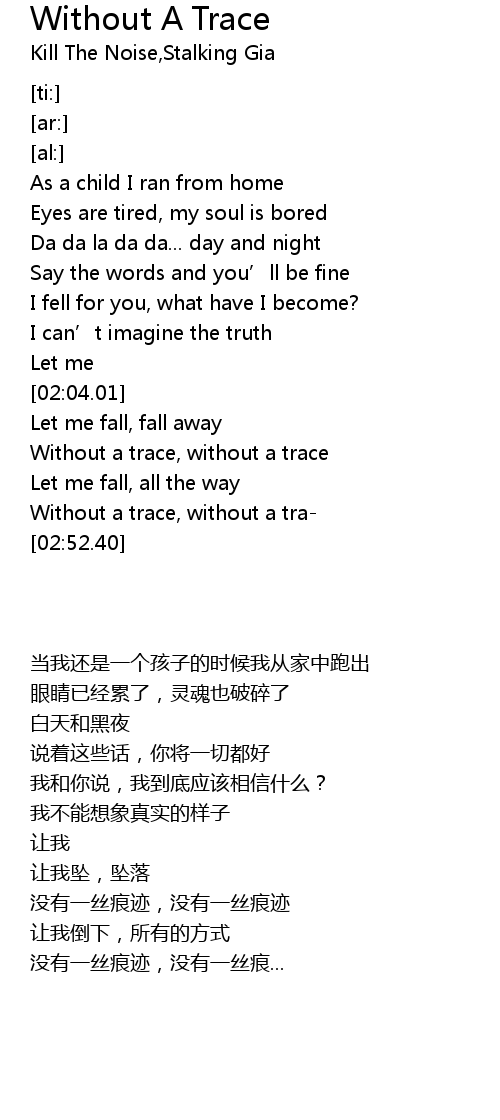 | [02:34.68] | 没有一丝痕迹,没有一丝痕迹 |
