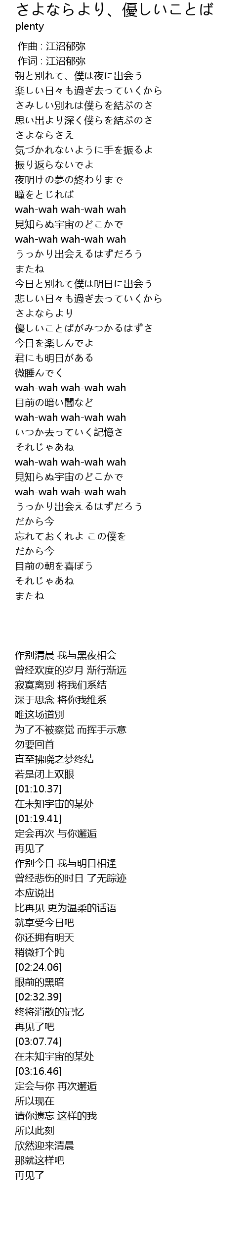| [02:08.07] | 比再见 更为温柔的话语 |