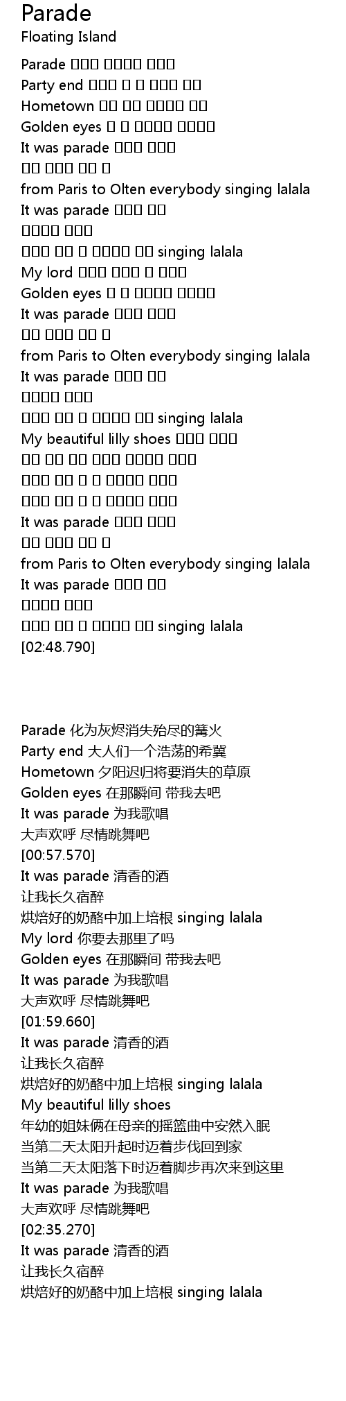 | [02:30.980] | It was parade 为我歌唱 |