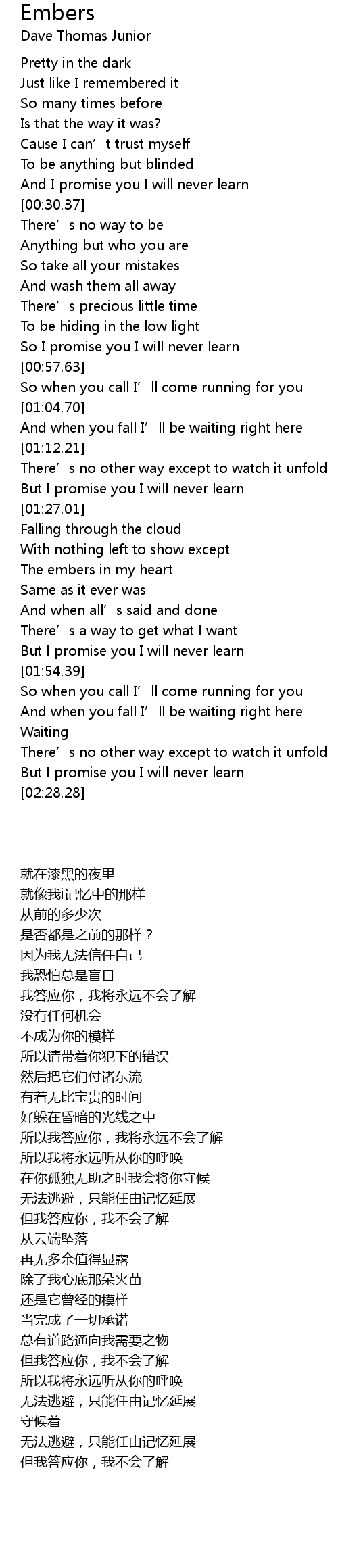 | [01:35.76] | The embers in my heart |
