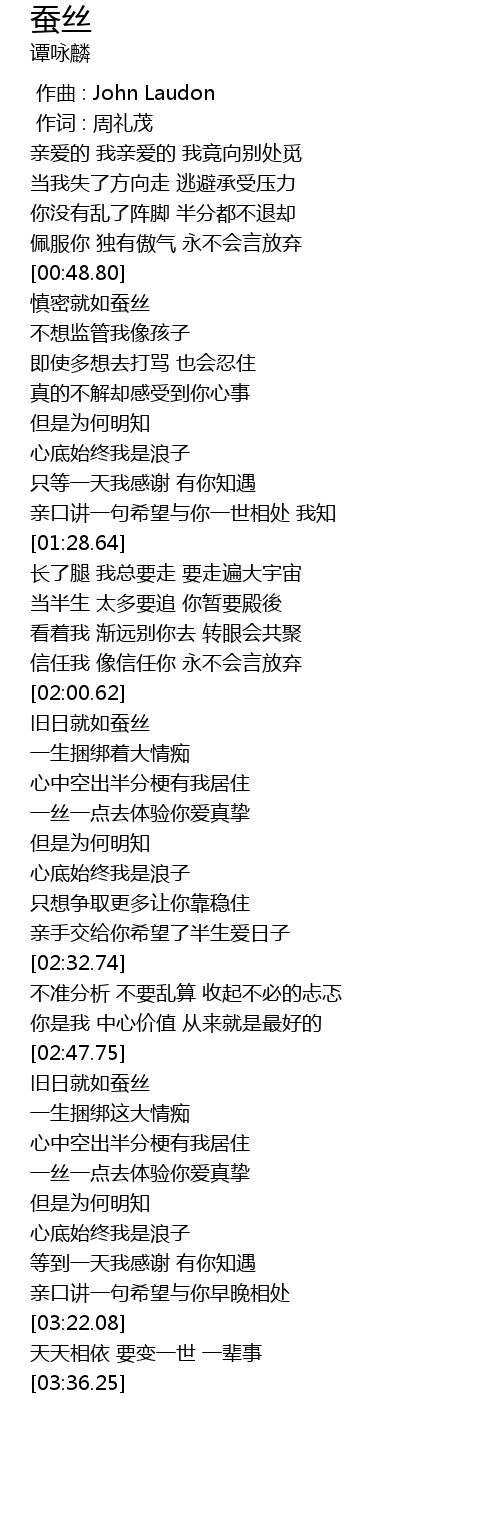 | [00:49.38] | 慎密就如蚕丝 |