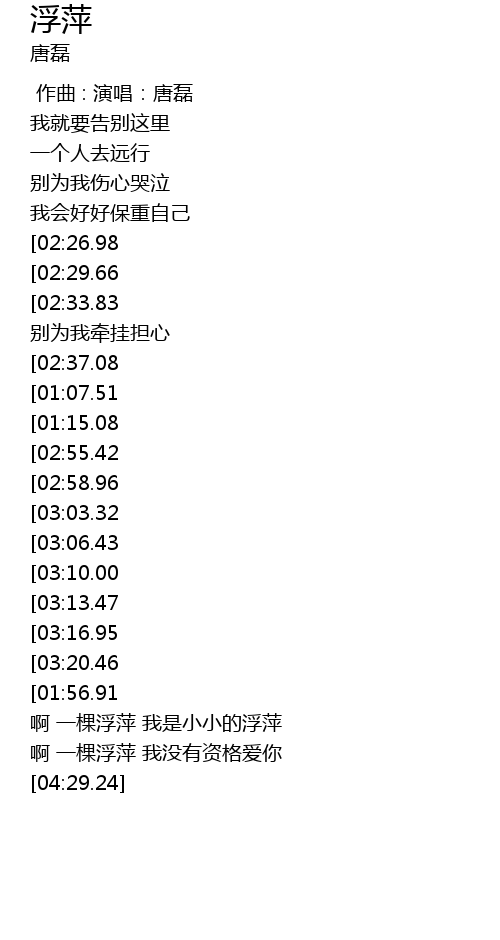 | [04:01.14] | 啊 一棵浮萍 我是小小的浮萍 |