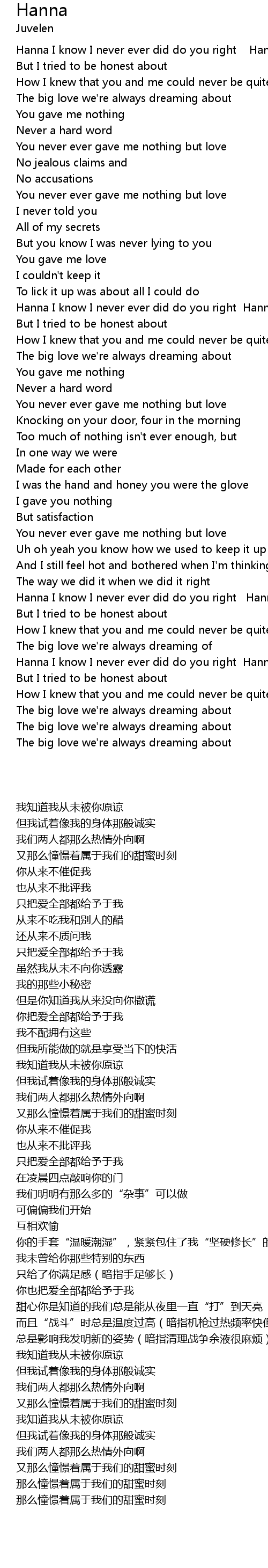 Hanna I know I never ever did do you right Hanna |