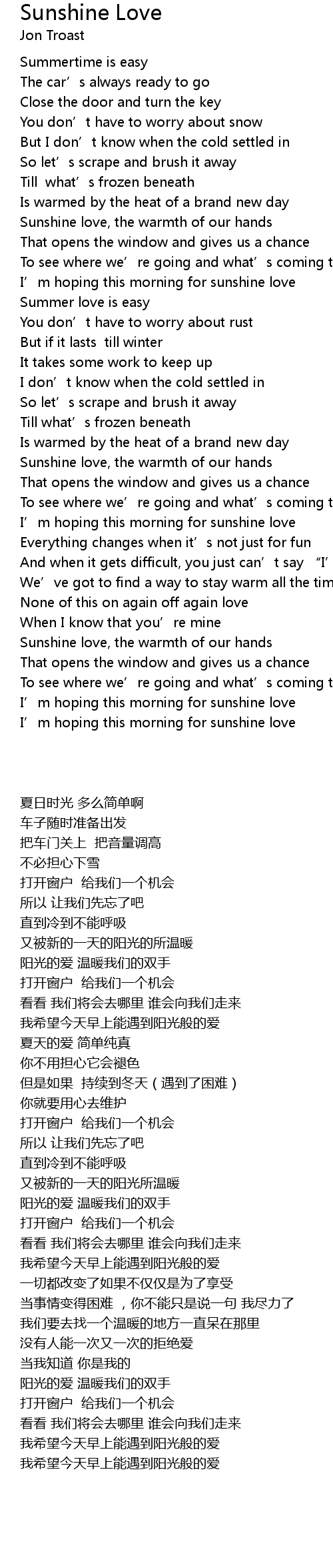 | [03:55.67] | I' m hoping this morning for sunshine love |