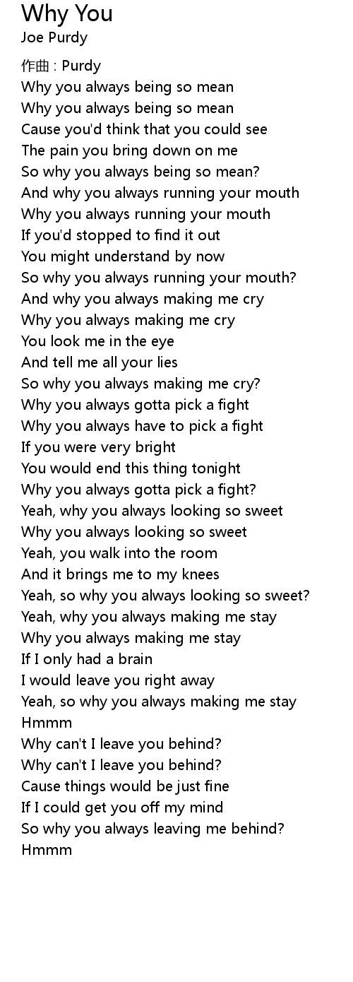 | So why you always making me cry? | |