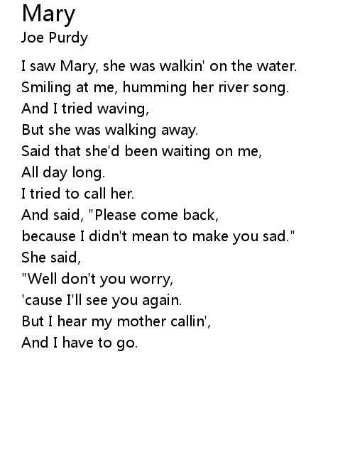 | I saw Mary, she was walkin' on the water. | |