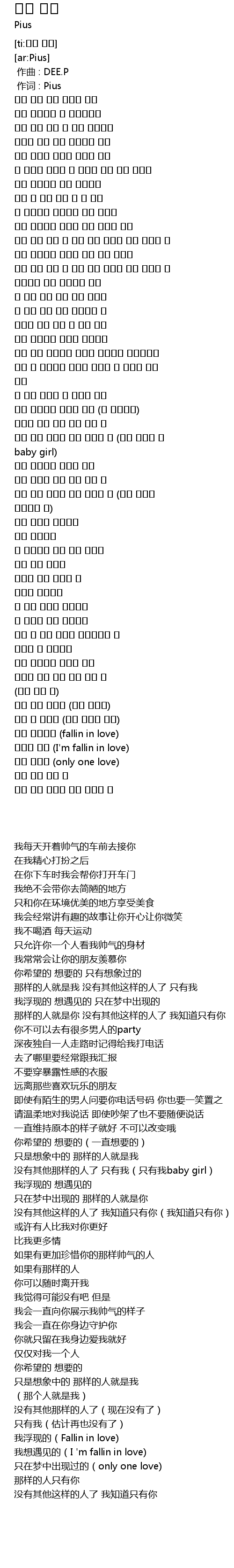 | [02:28.86] | 이런 사람 없을걸 오직 나뿐인 걸 (오직 나뿐인 걸 baby girl) |