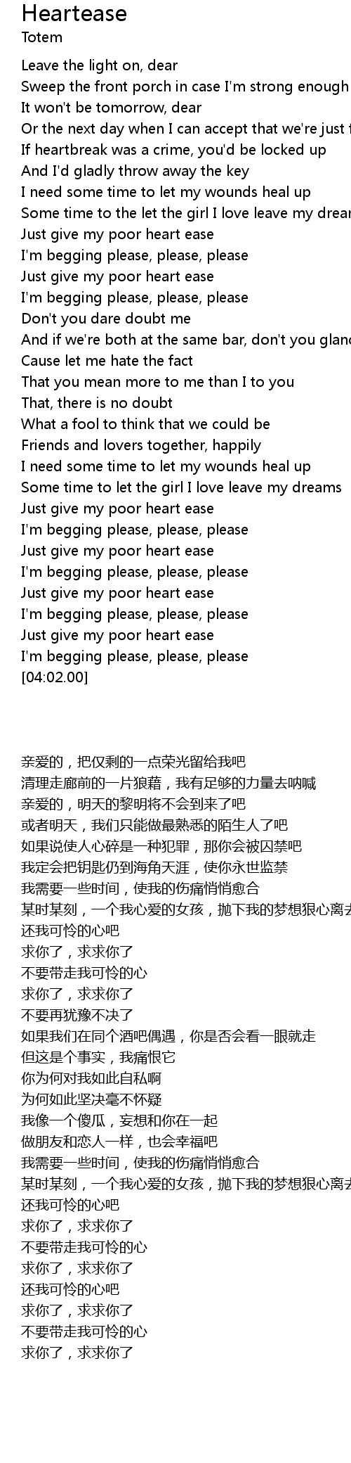Just give my poor heart ease |