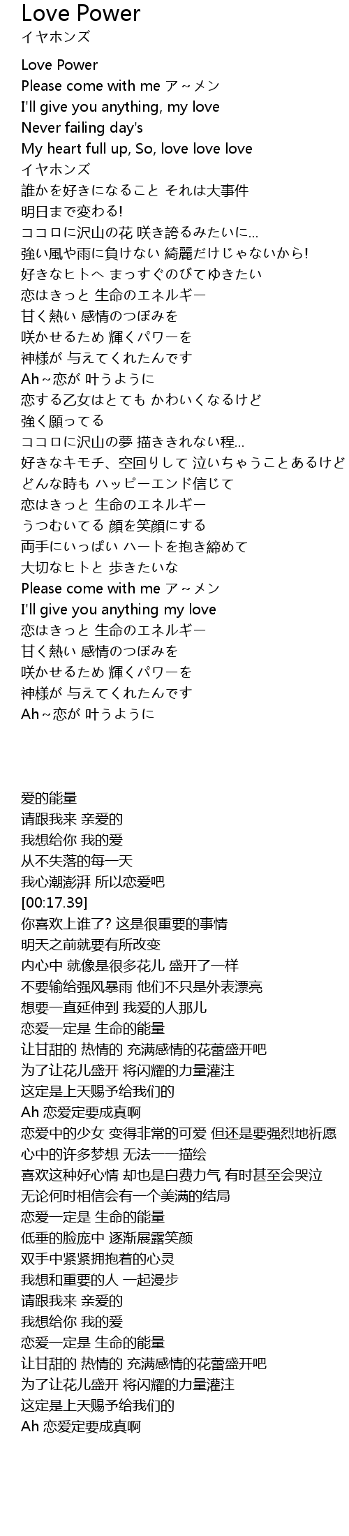 | [01:08.52] | 恋はきっと 生命のエネルギー |