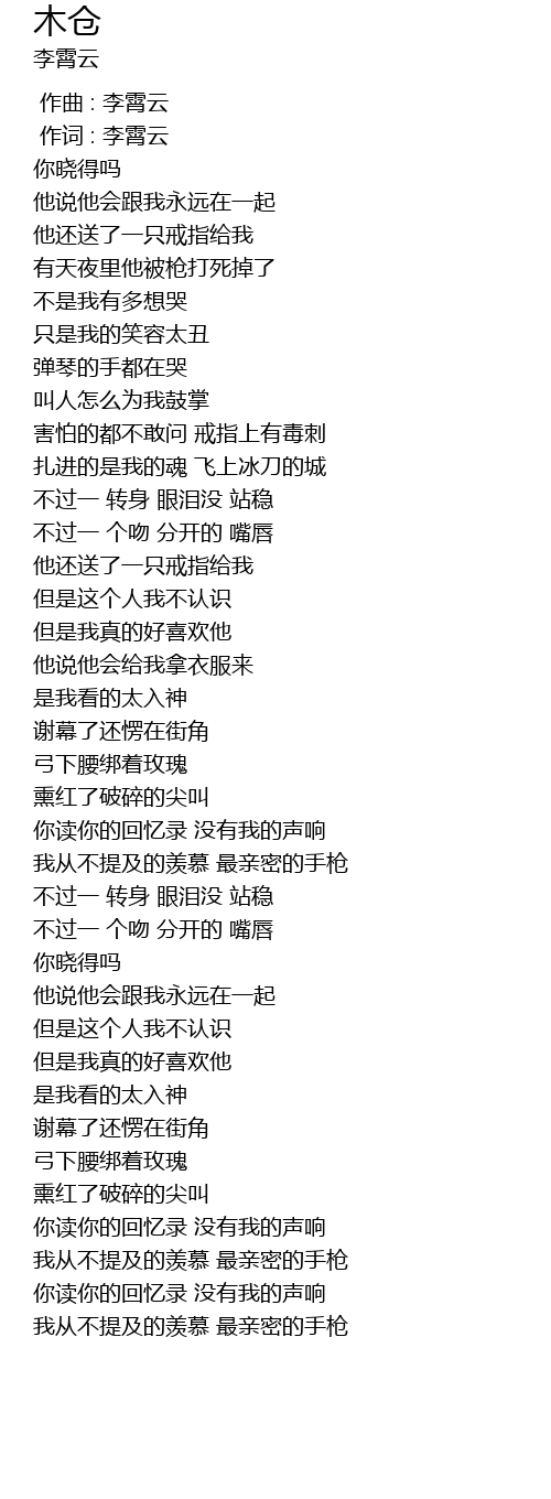 | [00:01.00] | 作词 : 李霄云 |