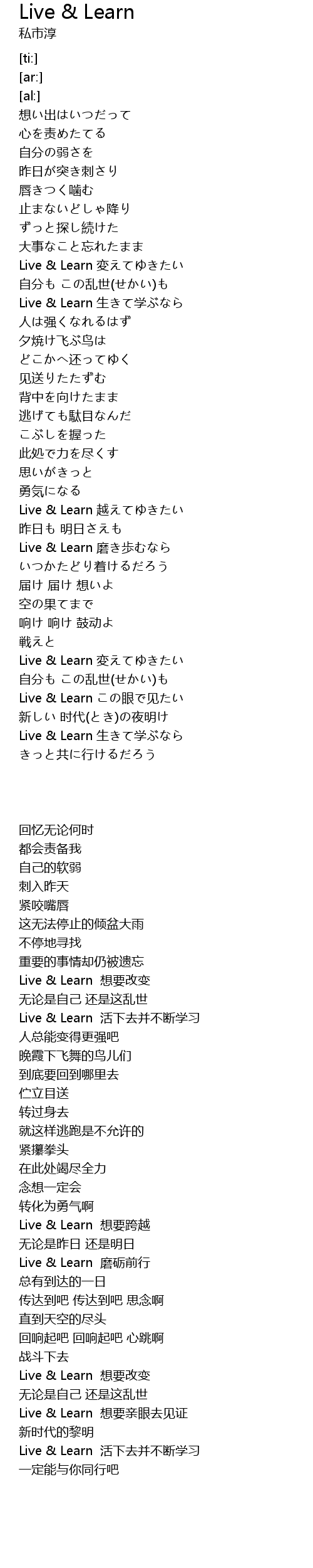 | [03:19.53] | Live & Learn 活下去并不断学习 |