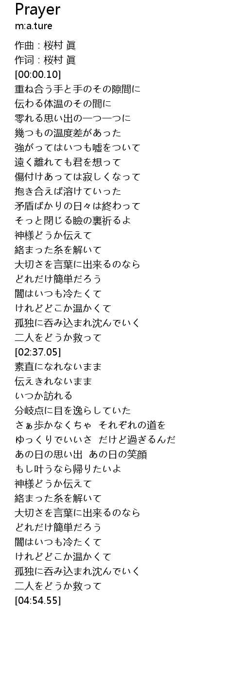| [01:36.85] | そっと閉じる瞼の裏祈るよ |