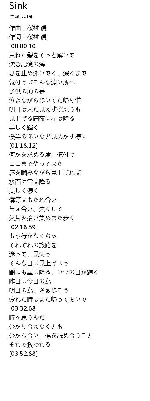 | [00:55.25] | 明日は未だ見えず揺蕩うも |