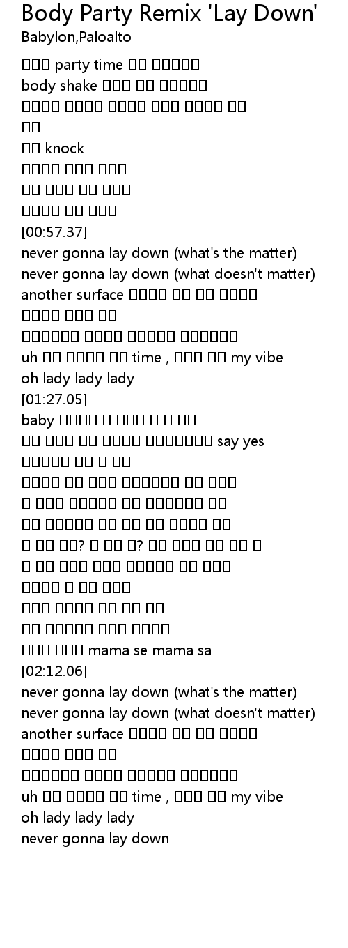 | [02:24.40] | never gonna lay down (what's the matter) |