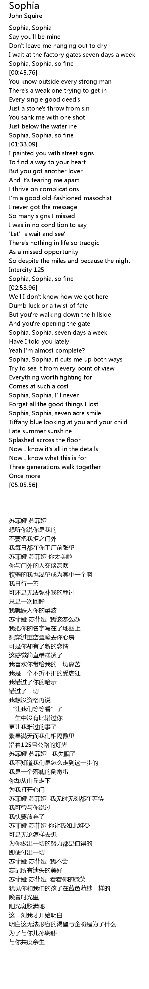 | [00:39.23] | Sophia, Sophia, so fine |