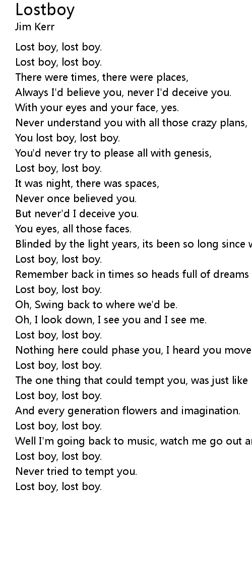You lost boy, lost boy.