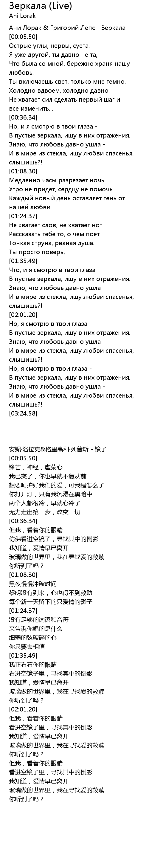 | [00:00.00] | Ани Лорак & Григорий Лепс - Зеркала |