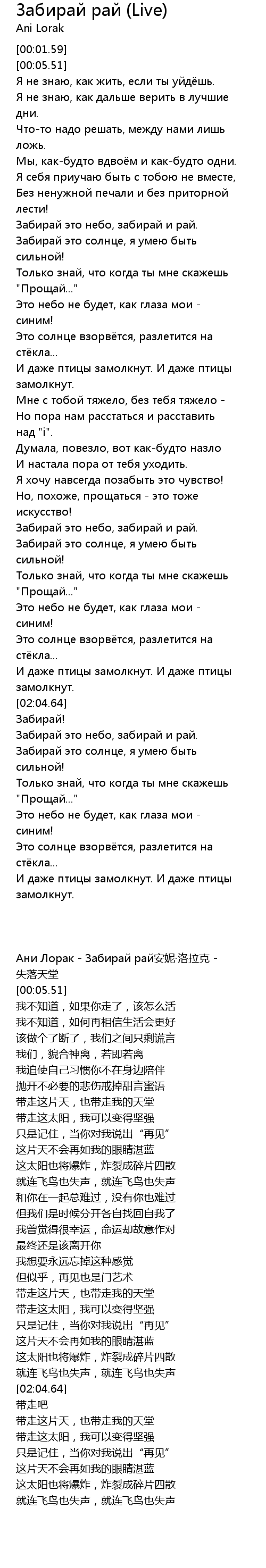| [01:32.53] | Забирай это небо, забирай и рай. |