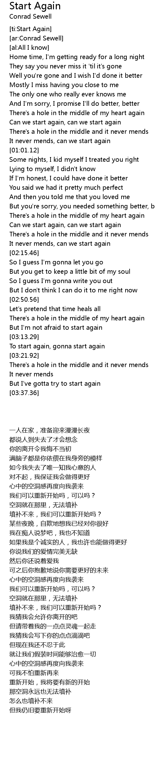 [ti:Start Again] |