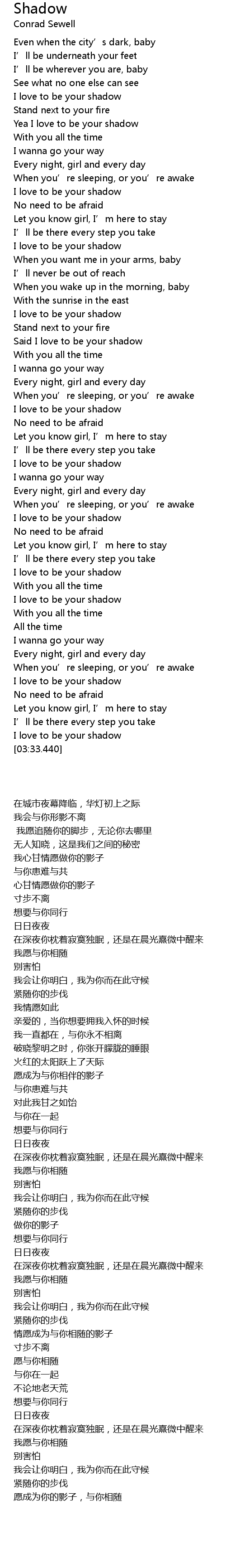 | [00:33.540] | Yea I love to be your shadow |