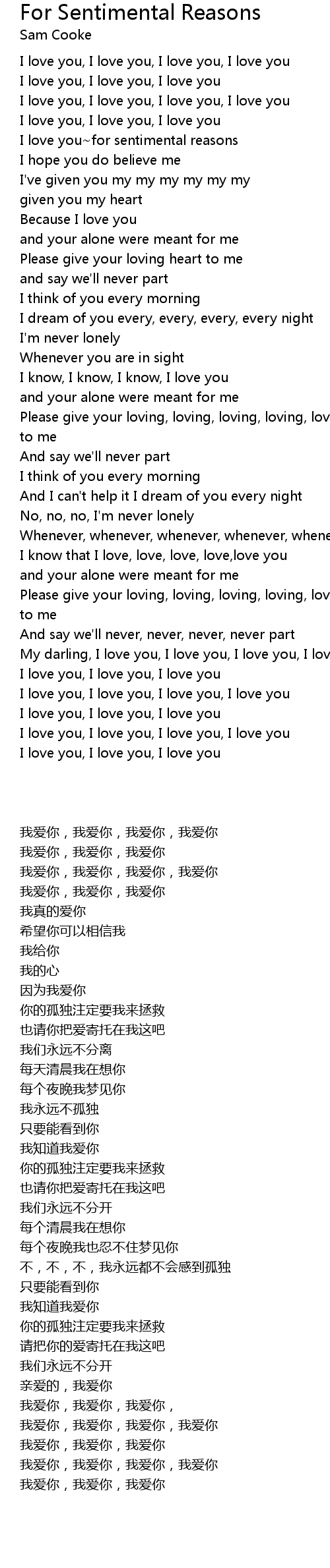 For Sentimental Reasons 歌词