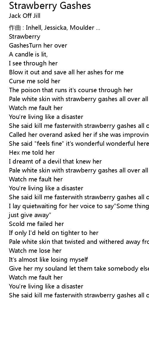 | She said kill me fasterwith strawberry gashes all over all over | |