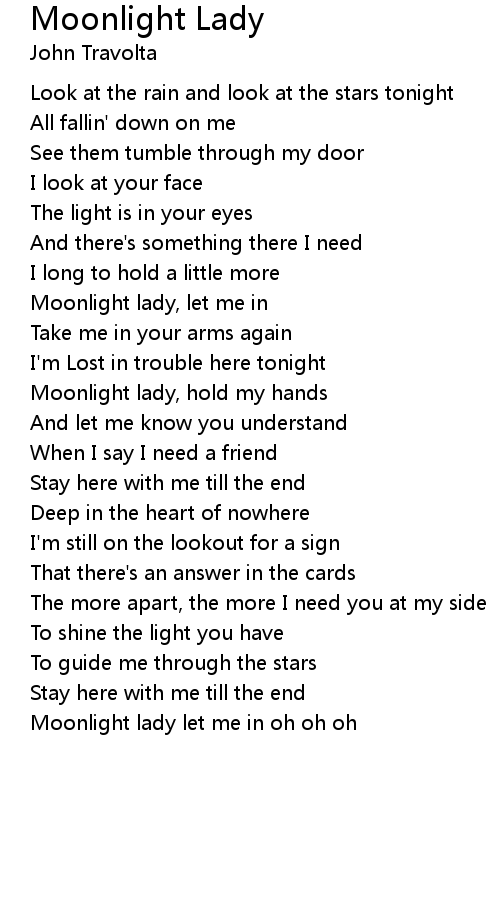 Moonlight lady let me in oh oh oh |