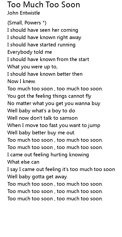 Too much too soon , too much too soon. |