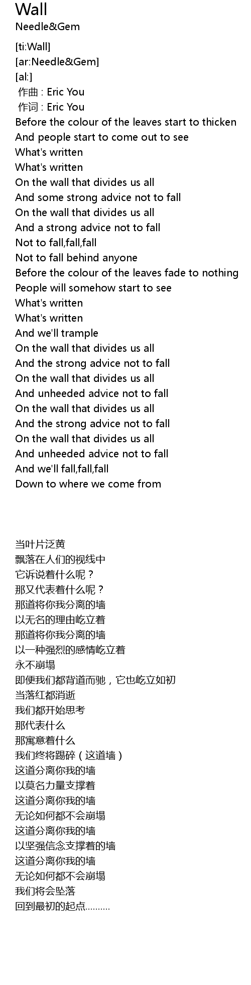 | [02:19.78] | 我们终将踢碎(这道墙) |