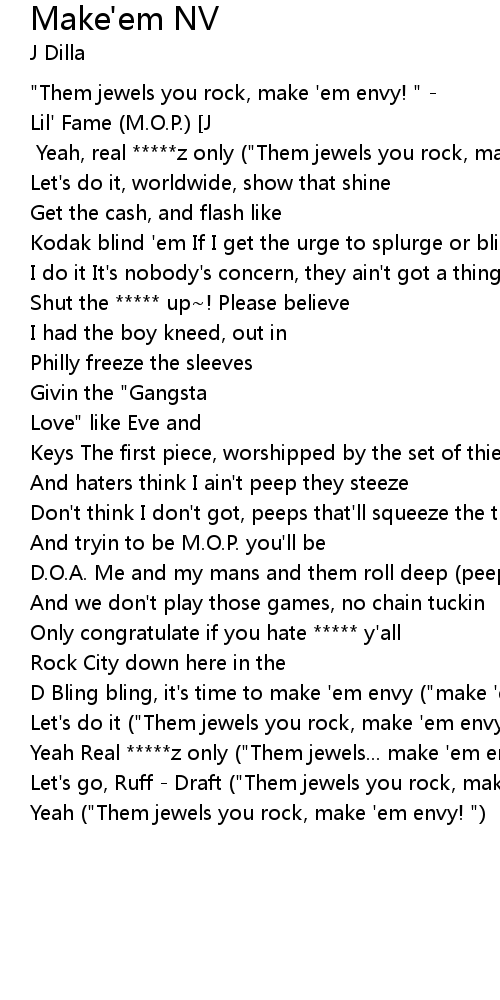 Dilla:] Yeah, real *****z only ("Them jewels you rock, make 'em envy! ") |