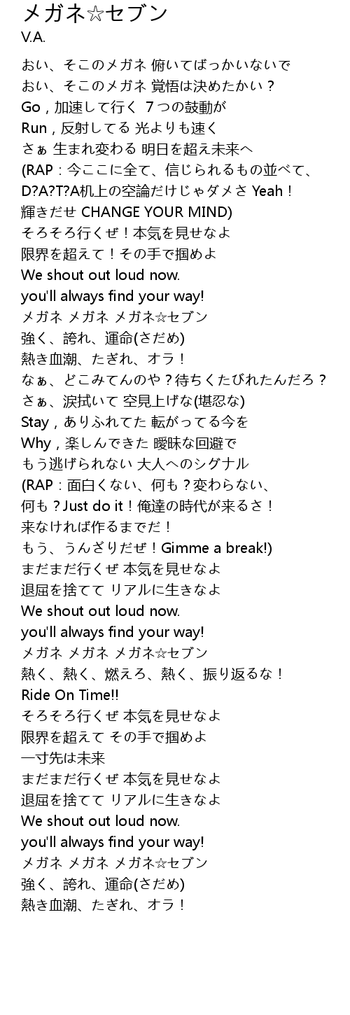 | [03:54.46] | メガネ メガネ メガネ☆セブン |