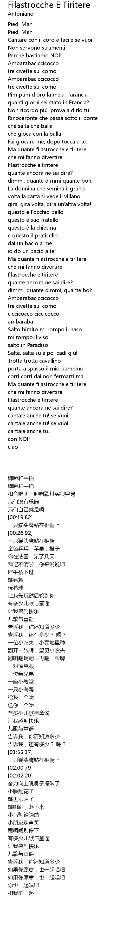| 歌曲 | Filastrocche E Tiritere |
