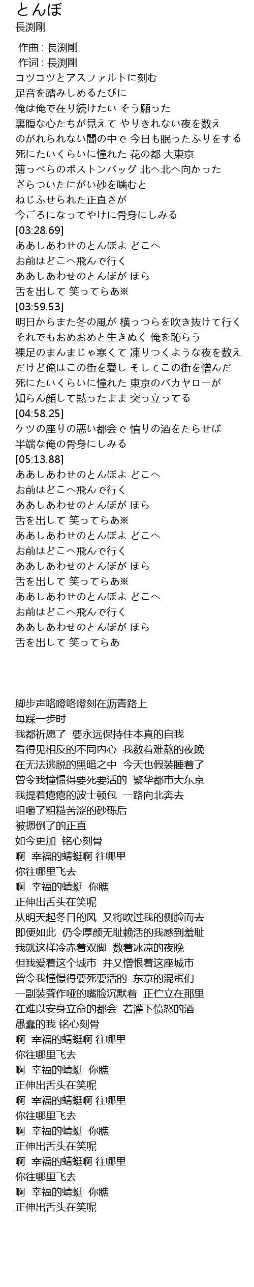 | [03:30.08] | ああしあわせのとんぼよ どこへ |