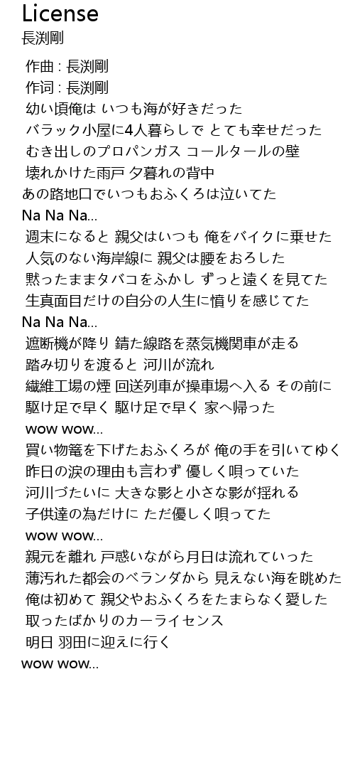 | [00:01.00] | 作词 : 長渕剛 |