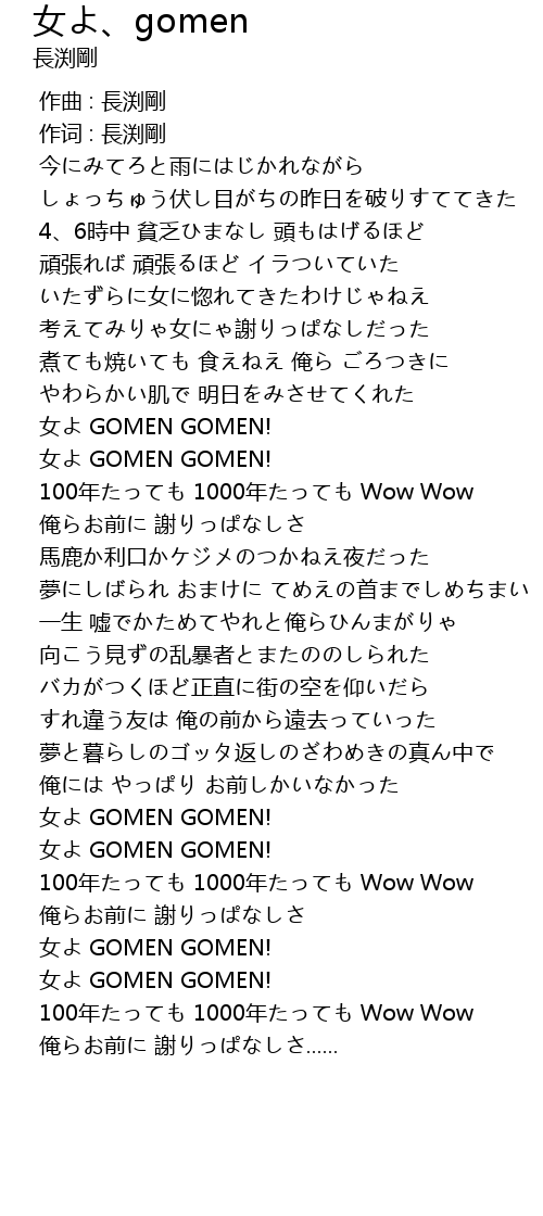 | [04:05.93] | 女よ GOMEN GOMEN! |