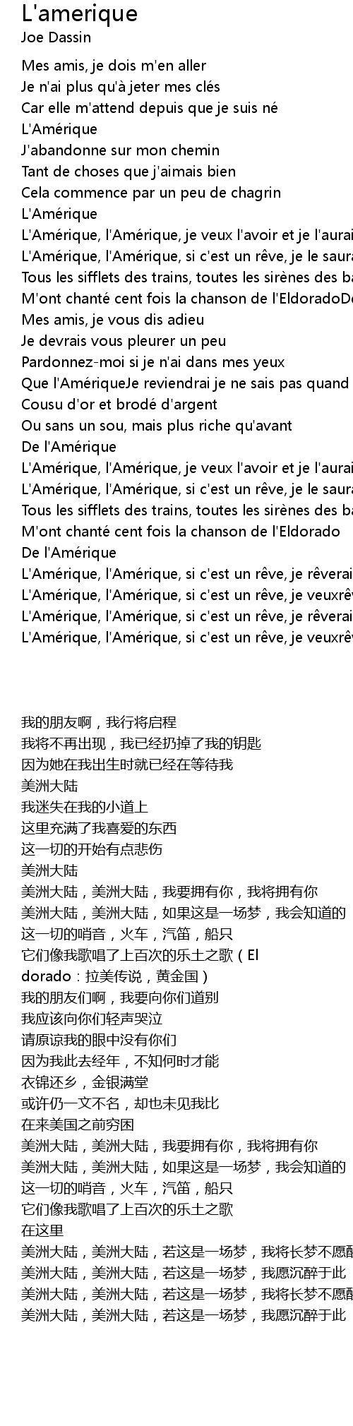 | [02:11.36] | L' Amé rique, l' Amé rique, si c' est un r ve, je r verai |