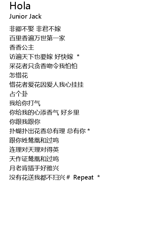 | 没有花送我都不扫兴# Repeat * |